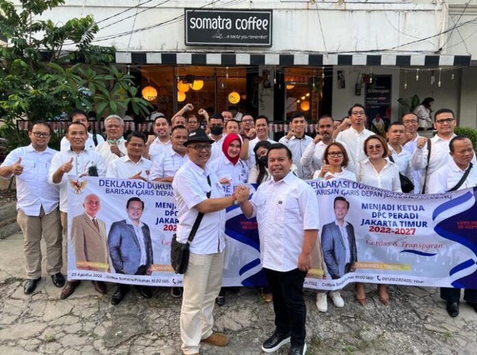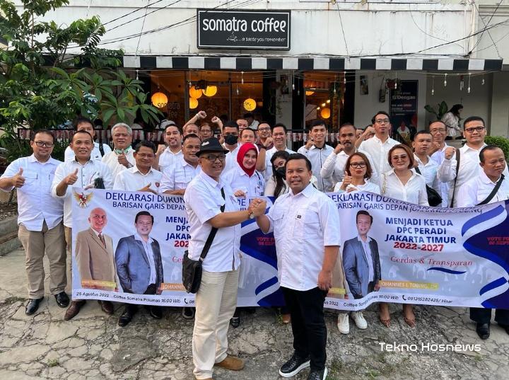 JAKARTA – Sejumlah advokat yang tergabung dalam Brigade JT, mendeklarasikan dan menyatakan mendukung advokat muda Johannes L Tobing sebagai Calon Ketua Dewan Pimpinan Cabang Perhimpunan Advokat Indonesia Jakarta Timur (DPC Peradi Jaktim) Periode 2022/2027.