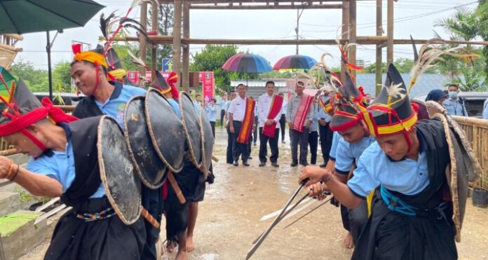 Rombongan disambut Kepala Lapas Kelas IIB Waikabuk, Yohanis Varianto dengan penyematan kain tenun khas Sumba Barat dan penampilan Tarian Kataga oleh Warga Binaan Pemasyarakatan (WBP) Lapas Waikabubak.