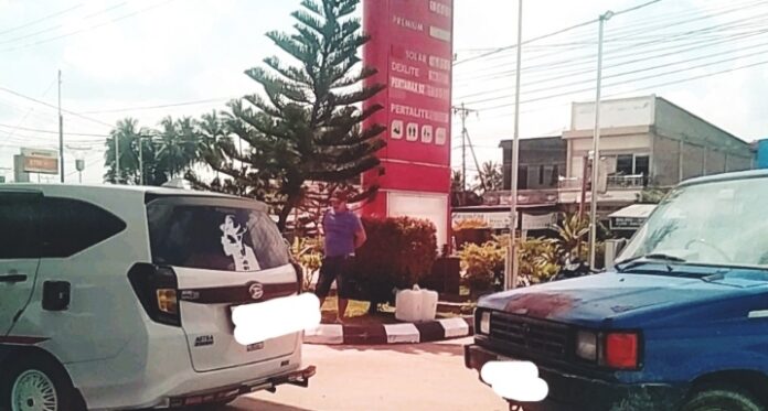 Pengisian minyak disalah satu SPBU 14.293.640 disungai jering walaupun ditengah kota teluk kuantan, masih saja melakukan dugaan bisnis BBM dengan pengisian secara pakai jeregen dengan mondar-mandir.