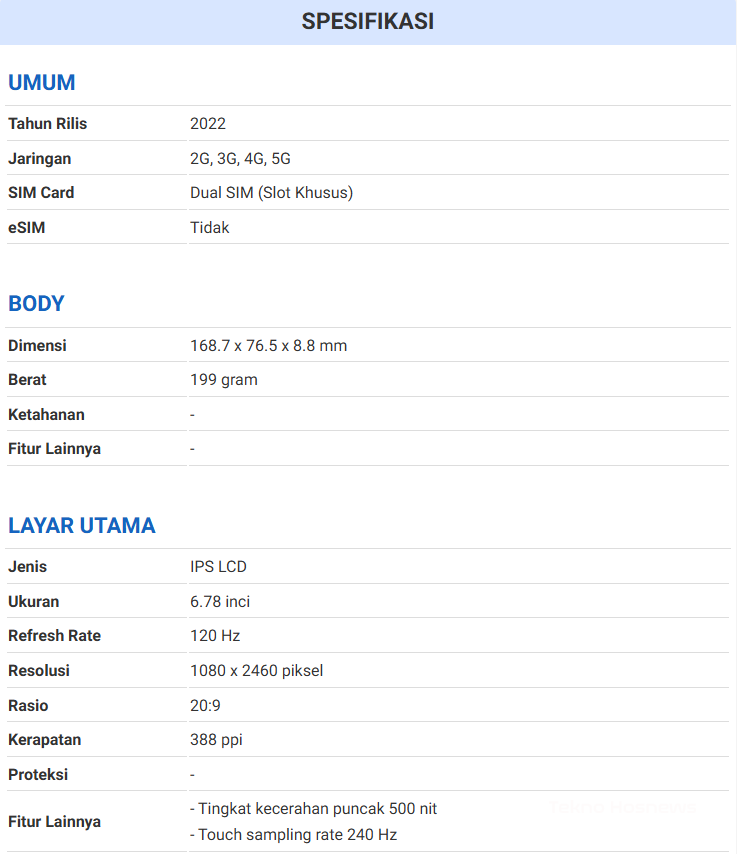 Smartphone ini hadir dengan layar besar berukuran sekitar 6,78 inci, serta resolusi Full HD+ yang memberikan pengalaman visual yang tajam dan jelas.