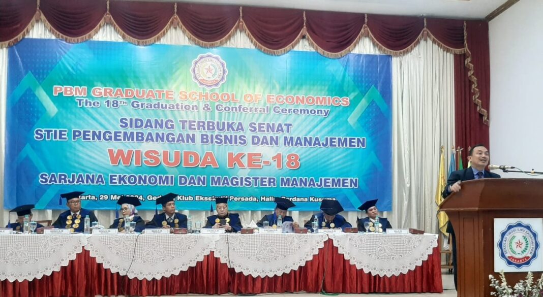 JAKARTA – Dr. Rita Zahara, SE., MM sebagai Ketua Sekolah Tinggi Ilmu Ekonomi Pengembangan Bisnis dan Manajemen (STIE PBM) dalam sambutan singkatnya pada Wisuda ke 18 Prodi S1 dan Prodi S2 di Gedung Klub Eksekutif Persada Halim Perdana Kusumah Jakarta, Rabu (29/05/24), mengajak para wisudawan dan wisudawati untuk merenungkan perjalanan panjang yang telah dilalui bersama.