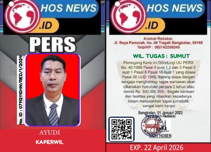SUMATERA UTARA – Pimpinan Redaksi Media Hosnews.id bersama Pimpinan Perusahaan dan Kuasa Hukum Media Online Hosnews.id menghimbau kepada Sdr. A.Yudi agar segera mengembalikan KTA Perusahaan Media Online Hosnews.id.