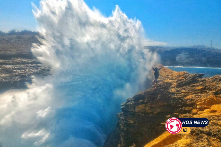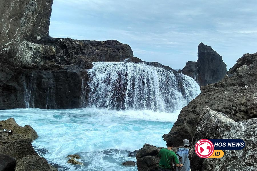 Fenomena alam yang cukup unik ini tercipta akibat ombak besar yang menghempas ke dinding batu karang lalu mengucur jatuh kembali ke laut layaknya air terjun.