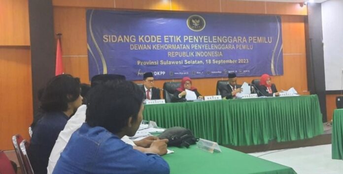 MAKASSAR – Dewan Kehormatan Penyelenggara Pemilu (DKPP) menggelar sidang pemeriksaan komisioner KPU Makassar dan 8 panitia pemungutan suara (PPS) yang dipecat akibat menemui bacaleg. Terungkap, PPS menerima uang dari bacaleg usai pertemuan tersebut. Sidang berlangsung di Kantor Bawaslu Sulawesi Selatan (Sulsel), Makassar, Senin (18/9/2023).
