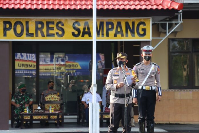 “Perkembangan kehidupan masyarakat yang sangat cepat menjadikan permasalahan lalu lintas dan anggkutan jalan makin kompleks dan dinamis khususnya dalam bidang keselamatan berlalu lintas,” kata Kapolres Sampang AKBP Arman, saat membacakan amanat Kapolda Jatim Irjen Pol Nico Afinta.