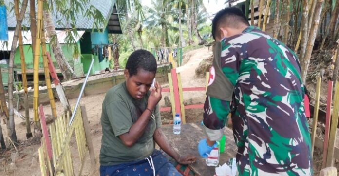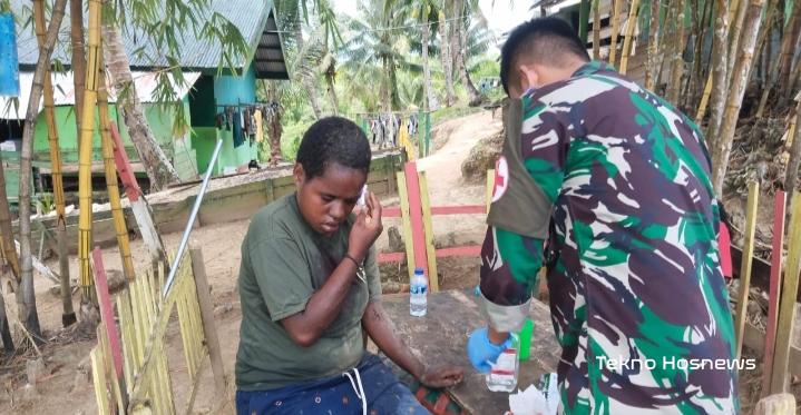 Tamtama kesehatan Pos Skamto langsung memberikan perawatan kesehatan terhadap korban yang mengalami pendarahan di bagian kepala lalu mengehentikan pendarahan tersebut dan membersihkan luka-luka kecil lainnya.