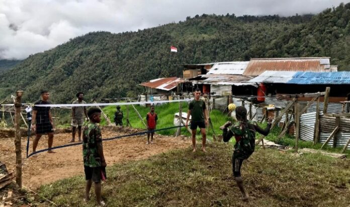 Nduga – Asah Kemampuan pemuda dari ujung Bumi Cendrawasih, Satgas Yonif Raider 321/GT/13/1 Kostrad Pos Yigi ajarkan teknik cara bermain sepak takraw kepada para pemuda di Distrik Yigi, Kabupaten Nduga, Papua.