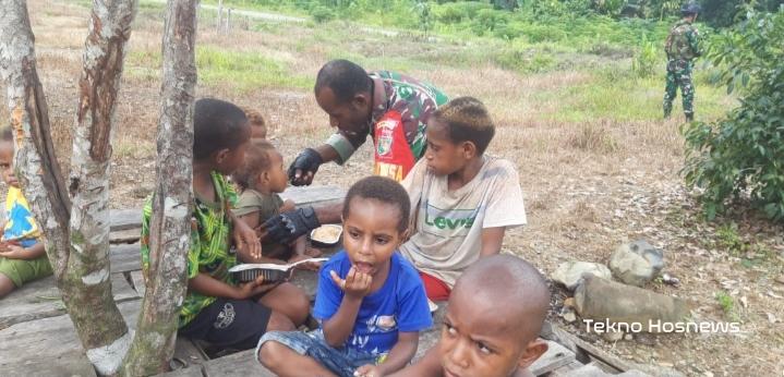 Dibawah pimpinan Danramil Kapten Cba Dwi Wawan, Babinsa Koramil 1715-01/Oksibil mengunjungi masyarakat di Kampung Dipol, Distrik Iwur, Kab. Pegunungan Bintang.