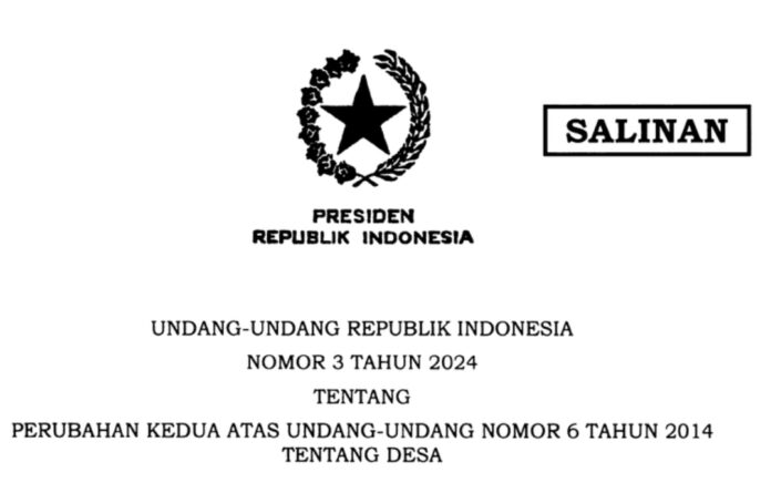 JAKARTA – Undang-Undang Republik Indonesia Nomor 3 Tahun 2024 telah membawa perubahan signifikan pada tugas dan kewenangan Kepala Desa (Kades).