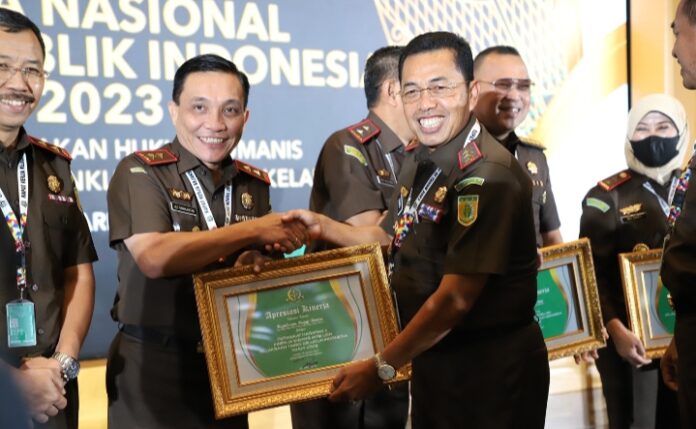 JAKARTA – Dalam Penutupan Rapat Kerja Nasional Kejaksaan Republik Indonesia Tahun 2023, Wakil Jaksa Agung memberikan penghargaan dan apresiasi kepada satuan kerja di lingkungan Kejaksaan RI atas capaian dan kinerja yang telah dilakukan sepanjang tahun 2022.