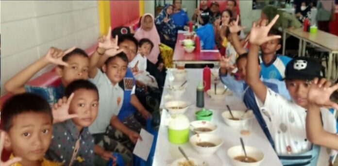 Selanjutnya, kegiatan dilanjutkan dengan makan mie ayam bareng bersama anak-anak yatim yang kelihatan mereka nampak sangat bahagia sekali.