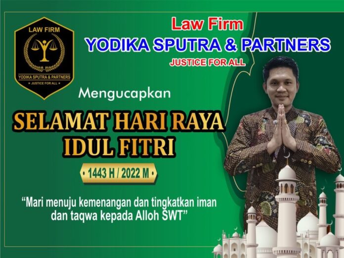 Kantor Advokat Yodika Sputra, SH dan Partners mengucapkan Selamat Hari Raya Idul Fitri 1443 Hijriah dan berharap bulan Ramadhan sebagai momen untuk saling mengasihi antar sesama dan bersikap saling toleransi antar umat beragama.